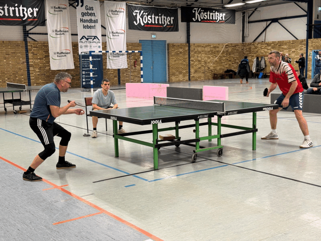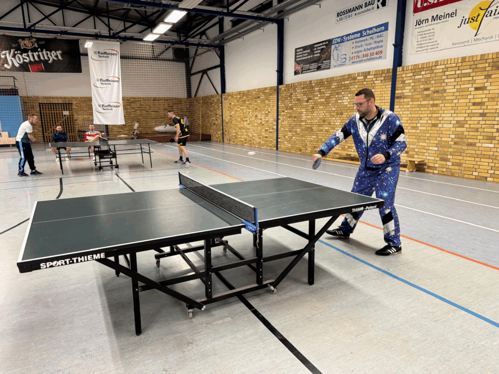 Zum ersten Mal veranstaltete der HSV Ronneburg ein Tischtennis-Turnier für alle Interessierten. Die 24 Startplätze waren recht schnell vergeben und das Interesse recht groß. Von jung bis alt, vom Anfänger bis gut trainierten Spieler war das Teilnehmerfeld gut durchmischt. Schon zu Beginn war klar, das der Spaß im Vordergrund steht, was teilweise an den Outfits deutlich zu erkennen war. Selbst die Vorbereitung und Nachbereitung war eher untypisch: die Organisatoren Denis, Daniel Rico und Torsten spielten vor und nach dem Turnier ein paar Blätter Skat.